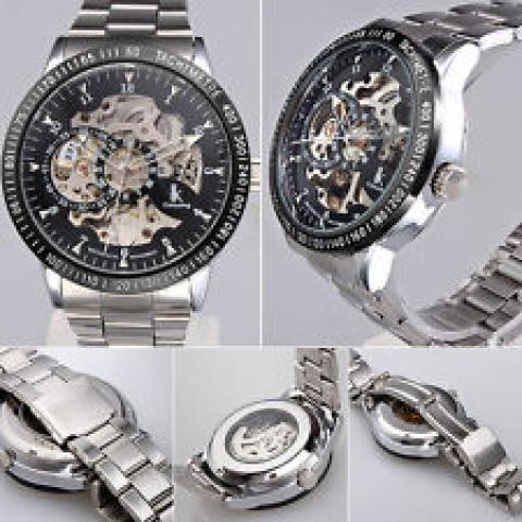 *Self winding mechanizmai- laikrodžiai šiek tiek prisisuka mosuojant ranka. *Metalinis laikrodis: metalinė apyrankė ir metalinis korpusas (korpuso skersmuo 4,1 cm, apyrankes ilgis 20 cm, korpuso storis 1,2 cm). Masyvus laikrodis. Juda minučių, valandų ir sekundžių rodyklės. Laikrodžiai dideli, labai gražūs, nauji. Laikrodžiai yra skeleton tipo- matyti visi judantys krumpiaračiai! Visi iš karto atkreipia dėmesį į tokį laikrodį! Galiu siųsti į visus miestus išperkamuoju paštu (+4 EUR) arba LP EXPRE