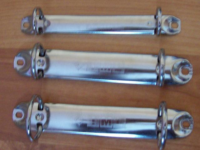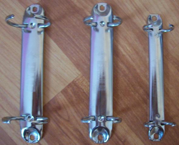 "Atsiveriantys" mechanizmai, kuriuos galima naudoti lapams susegti ar darant segtuvus, knygas ir pan. 3 dydžiai: 1. Ilgis - 12,3cm, plotos - 2cm, ratuko diametras - 2,6cm, yra 2vnt. 2. Ilgis - 12,4cm, plotos - 2, ratuko diametras - 2,1cm, yra 3vnt. 3. Ilgis - 11,2cm, plotos - 1,1cm, ratuko diametras - 1,7cm, yra 2vnt.