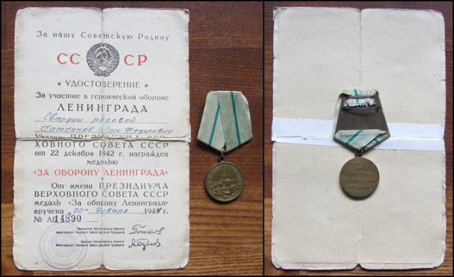 Medalis - za aboronu Leningrada su dokumentu
