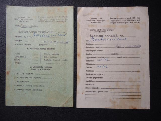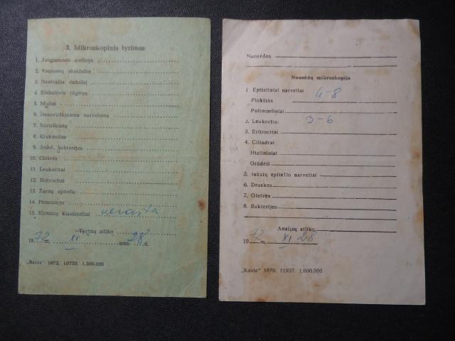 1972 m. siuntimas atlikti šlapimo analizę ir koprologinį tyrimą
