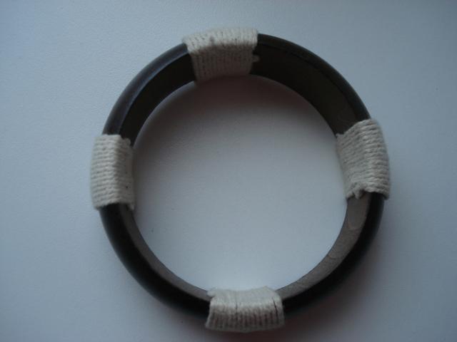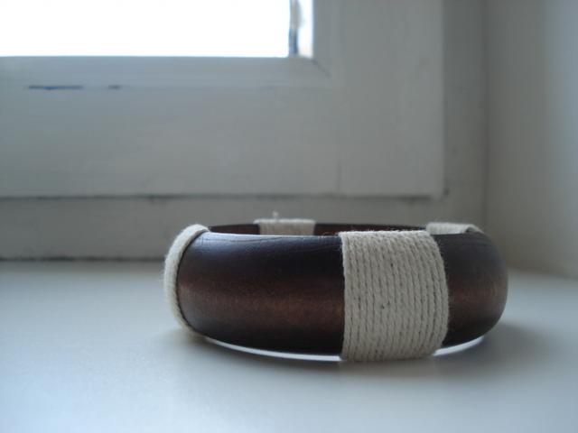 ruda,medinė apyrankė, tarpais apjuosta su virvutėm : )