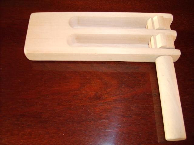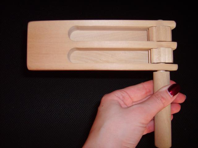 Medinė tarškyklė, kuri laisvai sukasi ir garsiai tarška. Puikiai tinka "balejinti" per rungtynes :)