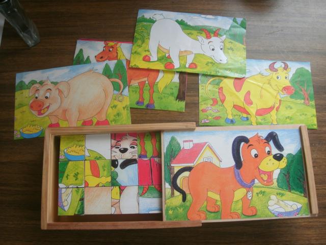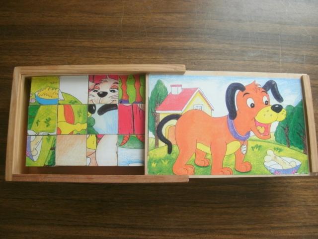 medinės kaladėlės-dėlionė