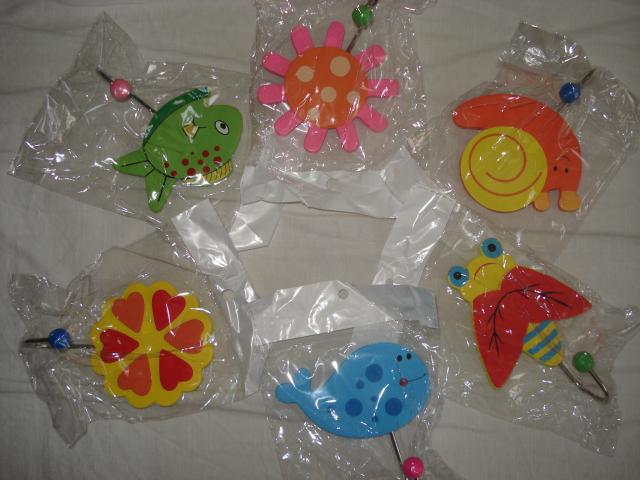 Ne visai žaisliukai, bet labai žaismingos medinės pakabėlės vaikučių drabužėliams ar rankšluostukams :) 1vnt. 9lt jeigu sudomino,dydžio klauskit konkrečiai pagal formytę, bet šiaip tikrai nemažos tos figūrėlės. Liko tik mėlynas banginukas ir gėlytė rožiniais žiedlapiais