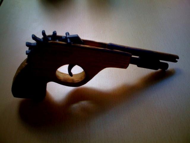 Medinis šautuvas šaudantis gumytėmis. Linksmas žaislas.