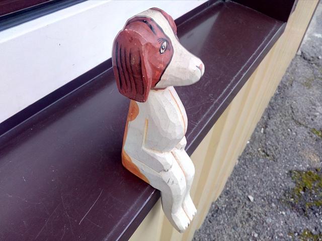 Medinis sėdintis šuniukas.