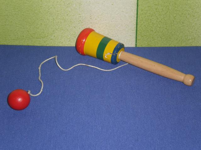 Medinis zaislas vaikams - kamuoliuko ant siulo gaudymas i lizda