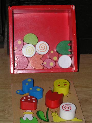 Pirkau už 50lt.Pagaminta iš medžio. Vienos detales nebera ( drugelio raudono sparnelio ) Kai kurios detales apsibraižiusios,apsitrynusios. Bet yra geros žaidimui.