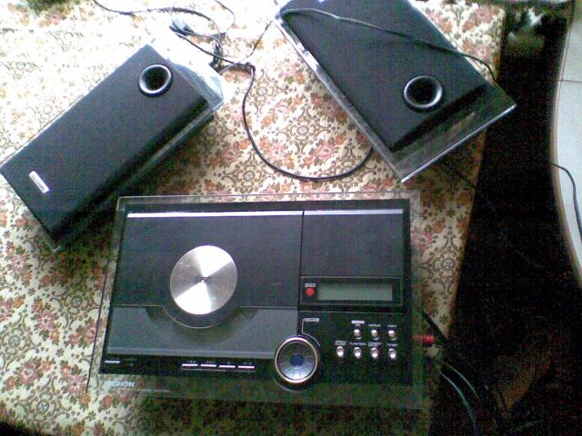 Medion firmos centriukas,dedasi diskas,kisasi kortele,ir flesiukas.centriukas ir kolonkes su stiklo imitacijos padailinimai,neoninis ekranelis ir dar yra jeme visokiu nustatymu garso,laikrodis zadintumas ir pan,jungesi atskirai backa,bet nebuvo prie jo kai pirkau,kas nusimano apie firmas tas zino,kad medion firma yra tikrai gera. Ir is karto sorry uz nuotrauku neryskuma.:)