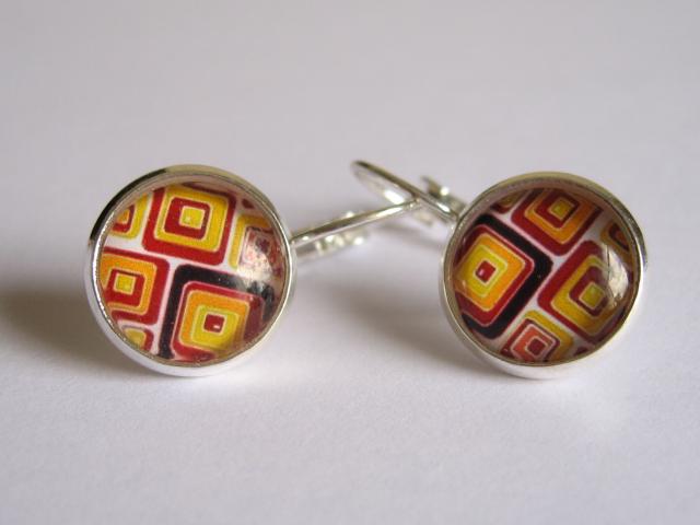 Auskariukai padaryti naudojant Collagen'o techniką. Auskariukų piešinėlis - tai paveikslėlis perkeltas ant fotopopieriaus ir uždengtas permatomu kabošonu. Auskariukų užsegimas sendinto žalvario spalvos.