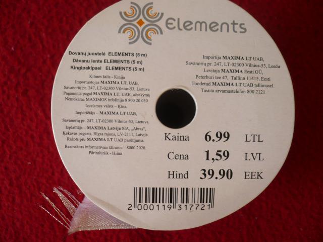 Medžiaginė dovanų juostelė: sidabro spalvos su žvaigždutėm.