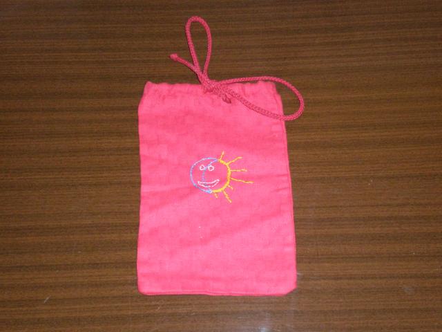 Medziaginis rausvas maiselis su saules ir menulio atvaizdu