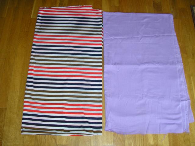 Parduodu įvairias medžiagas ir atraižas. Parduodu Vilniuje arba siunčiu, taip pat galiu mainytis . Kol kas foto tik dvieju, veliau paplidysiu. Dryzuota tampri kaip trikotazas 2x85cm, ilgis 172cm. (15eur) Violetine viskoze (medvilne) siek tiek kaip lamdyta plotis 97cm 3m. (7eur)