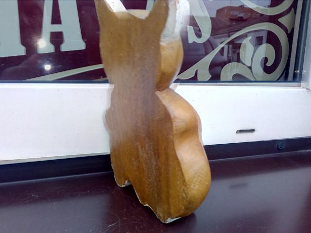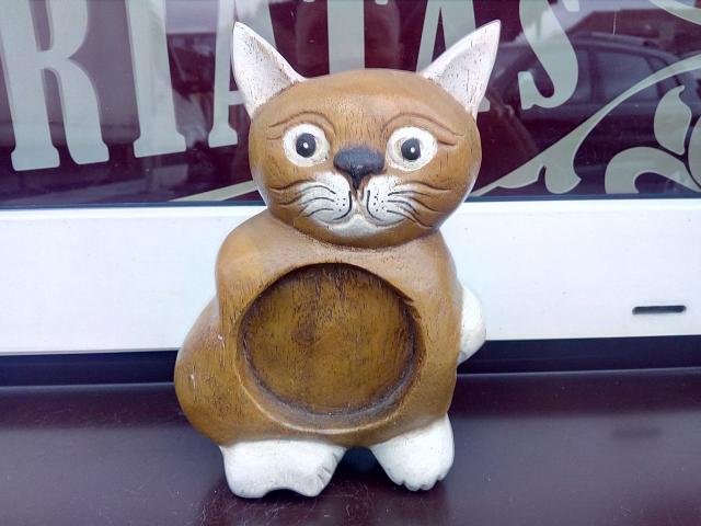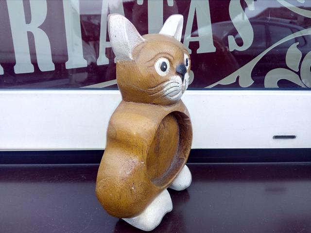 Medžio drožinys- rėmelis apvaliai nuotraukėlei Katinas.
