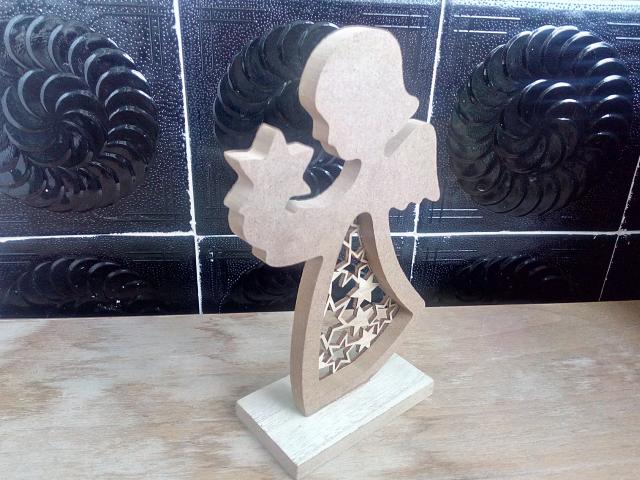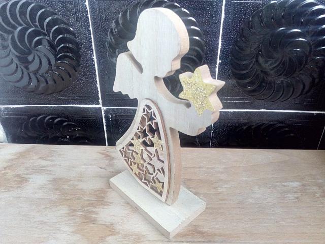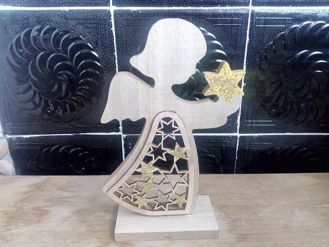 Medžio plaušo statulėlė Angeliukas su žvaigžde.