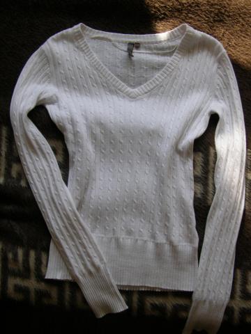 Gražus, akinančiai baltas megstukas iš EFFIGY. Mažai nešiotas, tačiau kartą išplautas skambimo mašinoje iš XS tapo labiau panašus į S/M dydį. ;DD
