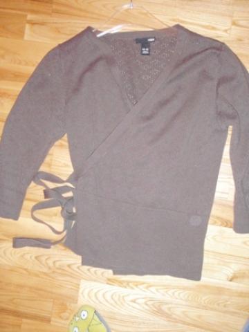 H&M, 40-42 dydis. Labai graži medžiaga, rankovės 3/4. persiriša ir pasidaro kairėje kaspinėlis :)