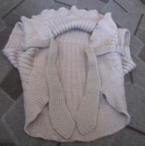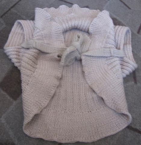 Trumpa, be rankovė, susiriša po krūtine. Nei karto neužsivilkta, neseniai numegzta. Vilna
