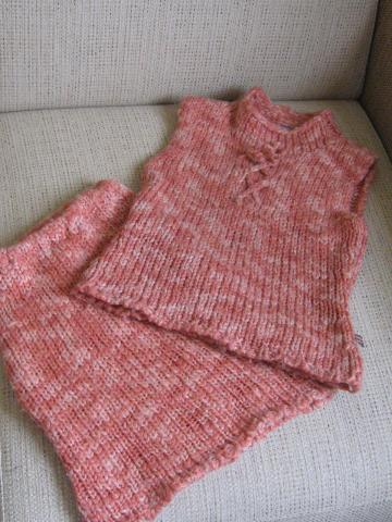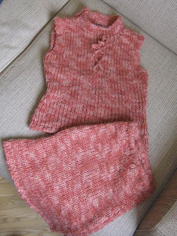 Megzta liemėnė ir sijonas skirta 6 metų mergaitai (116 cm).
