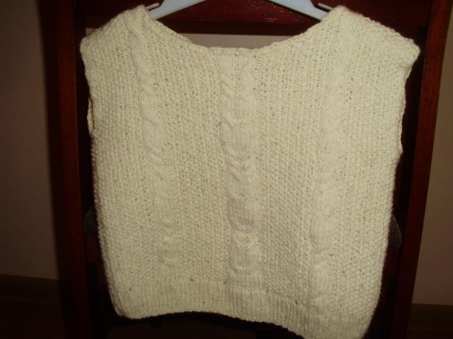 Šilta liemenė. Jei neklystu, tai vilna. Dydžio nežinau, nes pačios megztas, orientuotis į išmatavimus: plotis per krūtinę - 66 cm (dar pasitempia), ilgis - 33 cm.