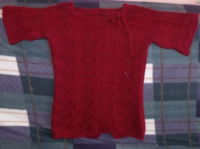 Rankų darbo megzta palaidinė trumpomis rankovėmis. S-M dydžio. Galima nešioti kaip megztuką arba kaip palaidinę. Kairiame šone prie peties yra megzta gėlytė. Ir kasdienai ir pasipuošimui !