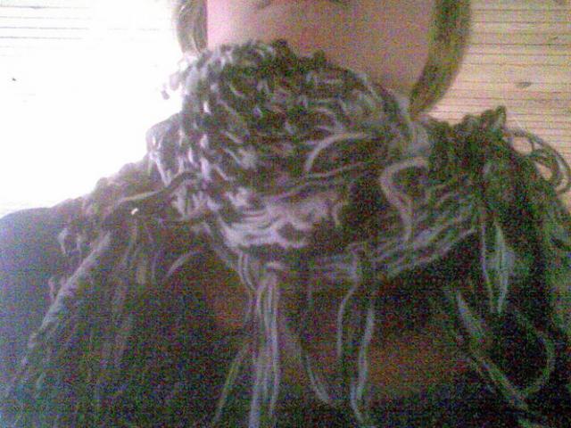 labai svelni, dabar madinga, megzta skara, juodai balta, didele.