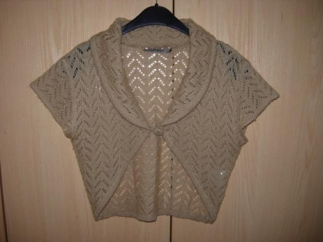 Labai mielas bolero/liemenė iš UK. Nedidelis defektas matosi nuotraukoje, bet darbščių rankų panelė manau lengvai jį sutvarkytų :) atitinka UK 14 dydį, bet aš jį nešiojau, nors mano, pagal UK, 8 dydis :)