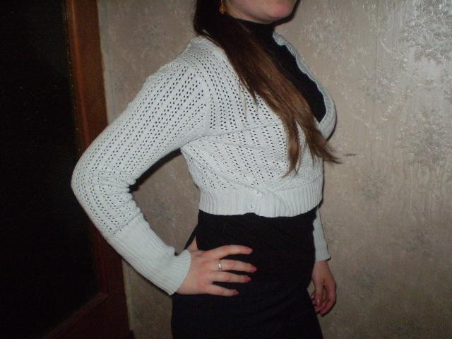 Megztas bolero. Viduj sagutės truputi sunkiai užsisega. Norėčiau 5Lt.