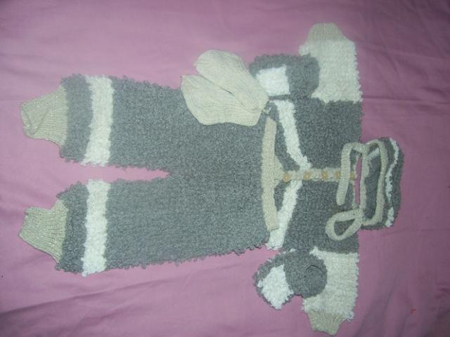 kelnytes,megztinukas ,kepurytė ,tapkytes-batukai ir vilnones kojinytės.mezgimas kilpelėmis.