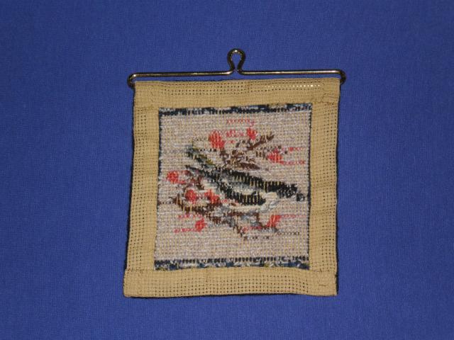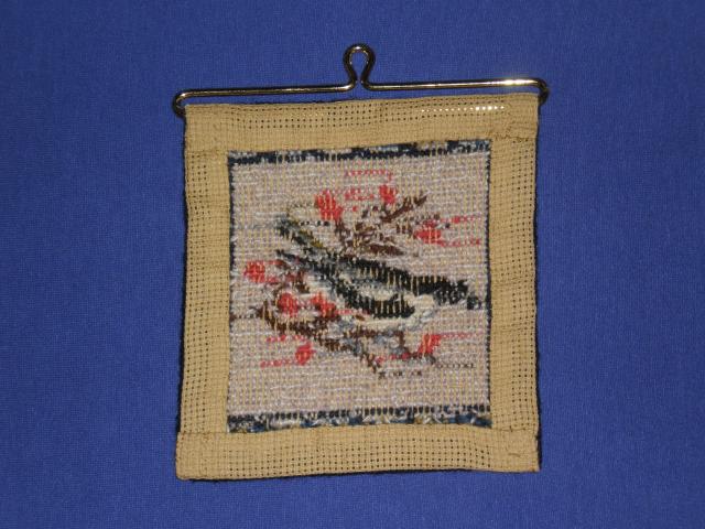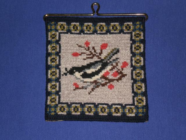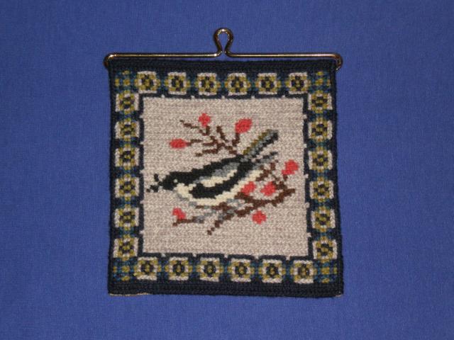 Megztas paveikslelis su pauksciu ir sermuksnio sakele