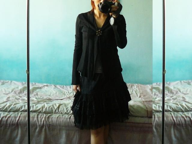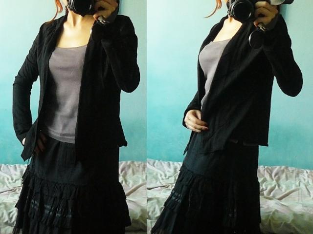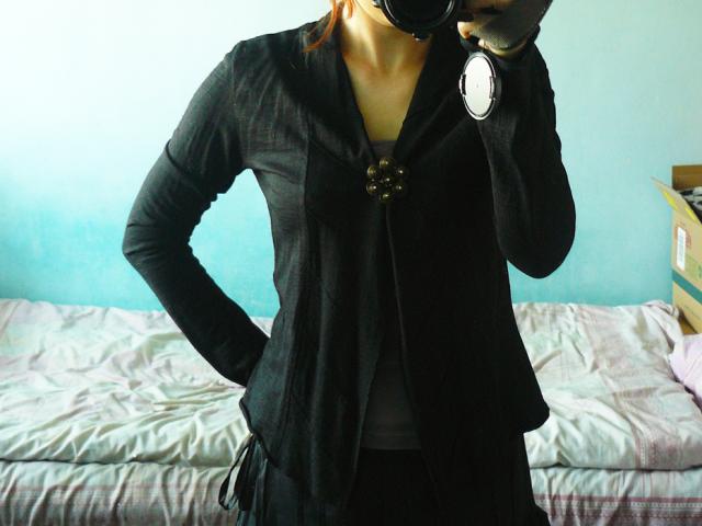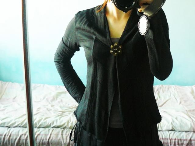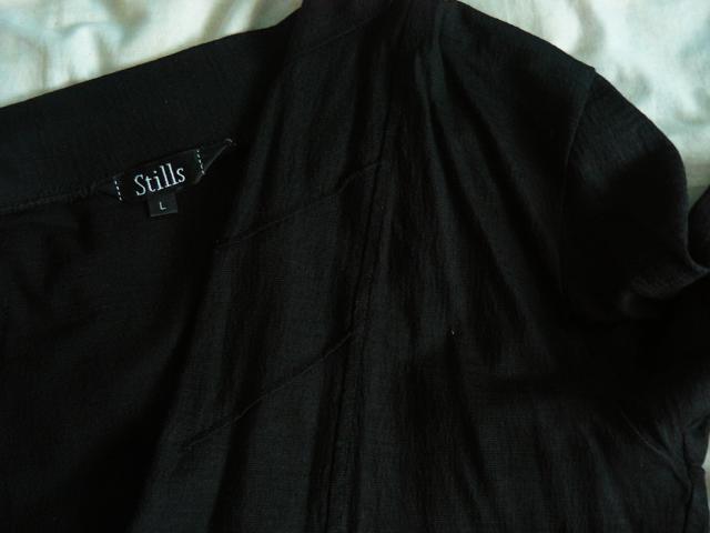 Jis toks paleidas, be sagės. Juoda nėra aklina, bet maloni akiai. Sunku pasakyt koks dydis, turbūt universalus nuo S iki L. Medžiaga neįprasta.