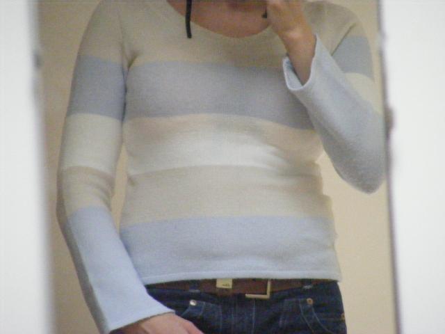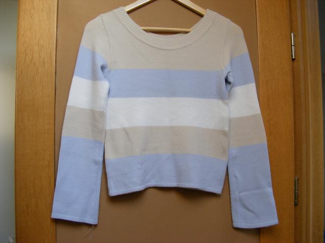 Švelnių spalvų megztinukas. Labai mielas. Tik kažkaip nebepriderinu aš jo.