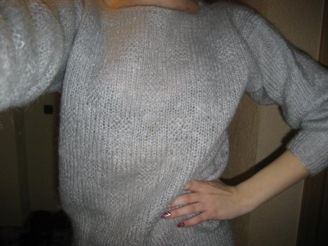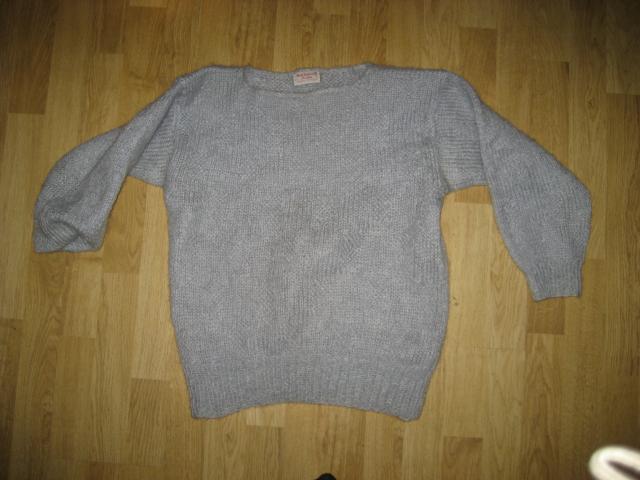 Rankų darbo, pilkas megztinukas, labai šiltas. Rankovės 3/4