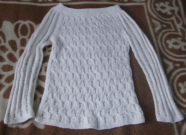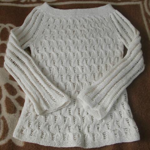 Ranku darbo baltos spalvos megztukas. Mazai devetas, todel jo kokybe yra islikusi labai gera.
