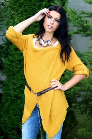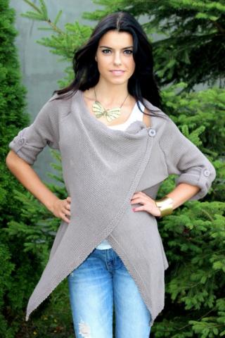Madingas laisvo stiliaus megztinis, susegamas saga. Tinka ir nėščioms. Vienas dydis, dėl plačių gabaritų tinkantis dydžiams S, M, L, XL. Atitinkamai atrodys daugiau arba mažiau aptemptas. Krūtinės plotis: 2x50 cm (ištempus 2x60 cm). Rankovės ilgis nuo pažasties: 44 cm, nuo peties: 63 cm. Bendras ilgis: 72 cm. Sudėtis: 100 % akilas.