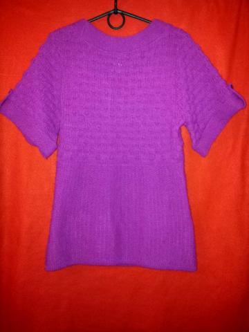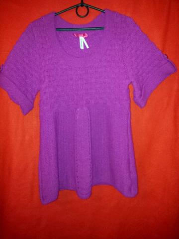 Ilgis 67 cm. Kaklo gylis 15 cm. Ties krutine 43 cm. Rankoves ilgis 24 cm, plotis 19 cm. Plotis apacioje 59 cm. Sudėtis vilna, akrilas Spalva violetinė/purpurinė .Next.
