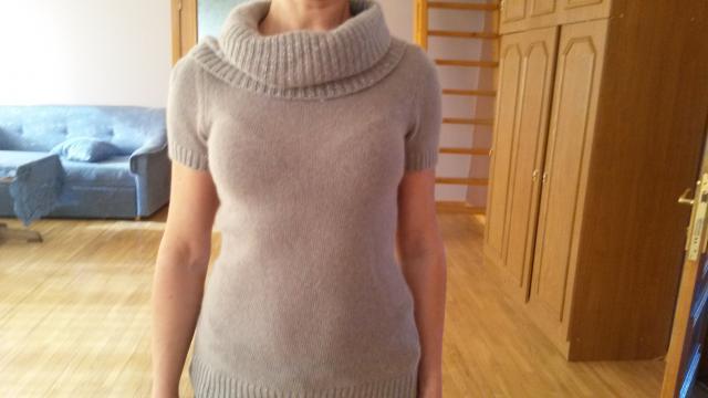 Megztinukas be rankovių. Naujas, nedėvėtas nei karto. Pilkas, šiltas, su apykaklę.