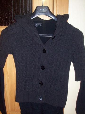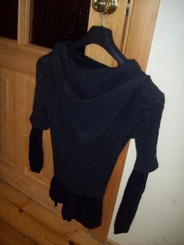 Siltas,pilkas megztas megztinukas su kapisonu.Apsirengus buwau gal vos pora kartu,taigi kaip naujas.22lt