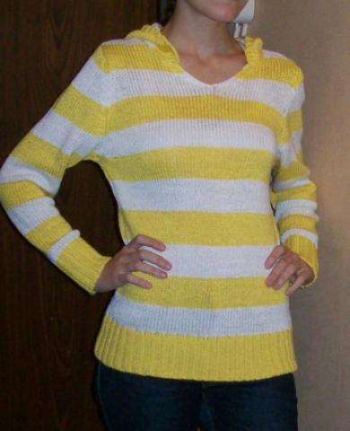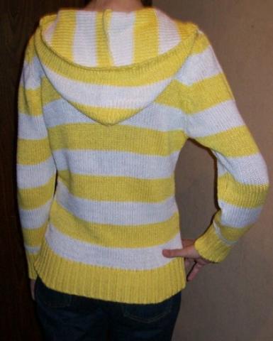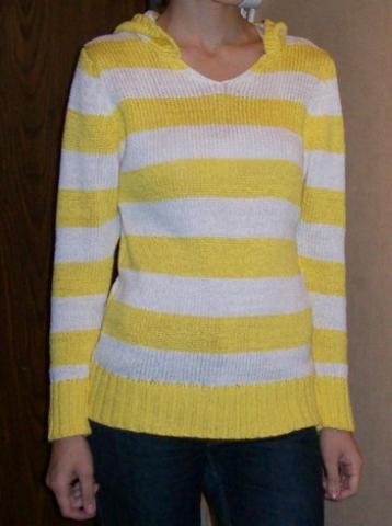 S- M dydžio dryžuotas megztukas - džemperis. Su kapišonu. Dėvėtas, būklė gera.