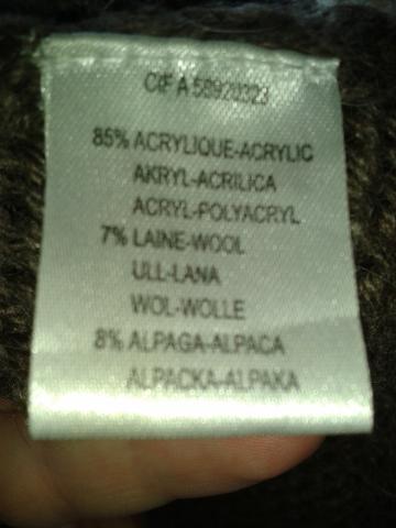 Megztukas iš Laredoute, raso 34 dydi, bet tikrai ryskiai padidintas. Labai siltas, tinkamas ziemai. Labai idomios formos ( mano vyrui labai nepatinka, vadina ji palapine)85 Akrilas, 8 alpaka, 7 Laine wool