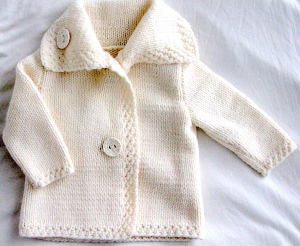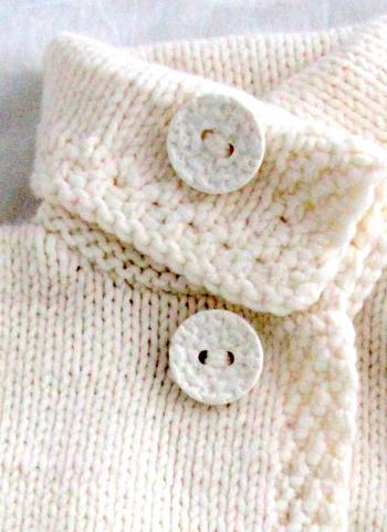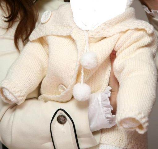 Megztuką dėvėjo krikšto metu bažnyčioje.Mergaitei tada buvo 4 mėn, bet tinka ir iki metukų laiko nestambiam vaikučiui. Susegamas sagomis. Megzta iš storų siūlų. Spalva - šviesi dramblio kaulo. Rankų darbas. Siūsiu i visus miestus.
