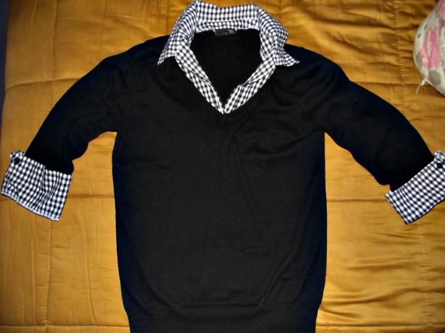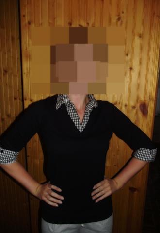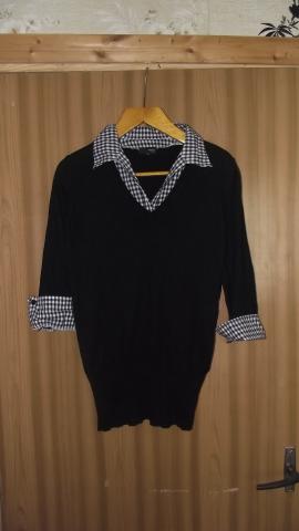 Rašo dydį L, bet tiks M ir L. Rankovė buvo įplyšusi, bet užsiuvau ir nesimato, nes ten toje vietoje kur užsilenkia languota medžiagytė. Ilgis ~65cm