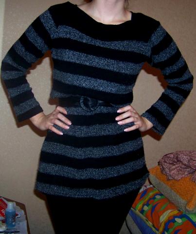 Gražiai atrodo su dirželiu. Ilgis - 70cm, rankovių ilgis - 61cm.