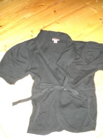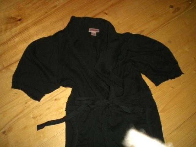 Juodas megztukas. puikiai atrodo ant maikutes ar marskinuku. dydis s. surrisamas priekyje.