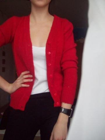 raudonas, siltas uzsagstomas. Visos sagutes vietoje. S/M dydzio.