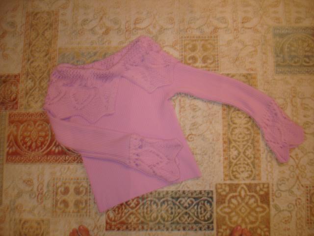 Rozinis,siltas megztukas. Apykakle ir rankoves nertos. Kaina 10Lt