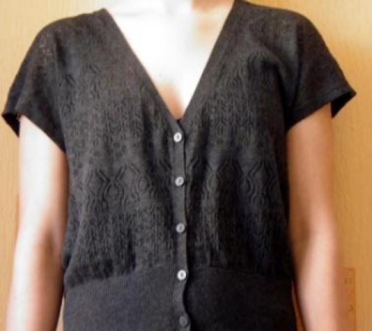 Pilkos spalvos, su smulkiais raštais, berankovis megztukas. Beveik nedevėtas. Susidomėjusias kviečiu į namus matuotis.