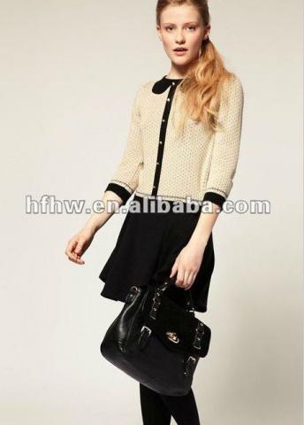 Žavus megztukas, kuris tikrai pagyvins oficialią aprangą. 3/4 rankovės, baby doll apykaklė, šviesios ir juodos spalvų kontrastas- must have drabužis rudeniui. Išmatavimai: S dydis: ilgis 55 cm, krūtinė 80 cm M dydis: ilgis 58 cm, krūtinė 86 cm