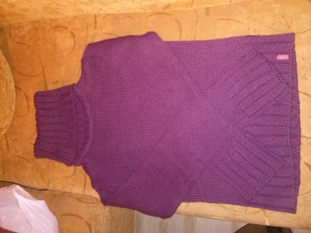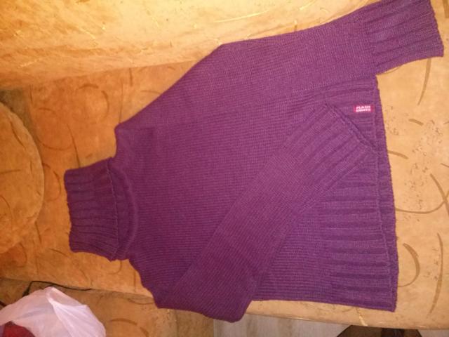 Silas violetines spalvos mekstukas. devetas bet neissitampes. Aukstas kaklas labai tinka ziemai.