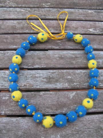 Mėlini veltinio karoliai